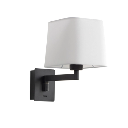 Lampa ścienna FINESS S czarny mat 1xE27 regulowana, abażur biały w komplecie, z włącznikiem
